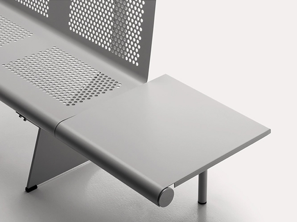 VACANTE offers a sober and strong bench system, with very few elements. VACANTE delivers long-lasting performance in busy public spaces. This approach has allowed VACANTE to evolve into a flexible bench, ideal for various locations, including airports and transport spaces. Its minimalist design is easy to clean and maintain, making it perfect for terminals where durability, comfort and practicality are essential. Suitable for both indoor lounges and outdoor waiting areas, VACANTE brings a modern and calm look to any transport environment, while offering reliable seating for all travellers.